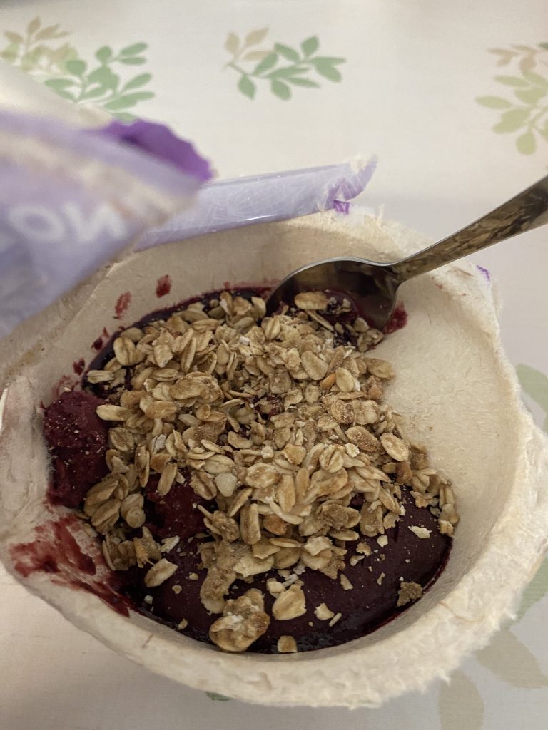 After mixing in the oats, it was time to dig in. The acai had a sorbet-like texture, melting gently in the mouth. The oats added a pleasant crunch, making the texture more enjoyable.