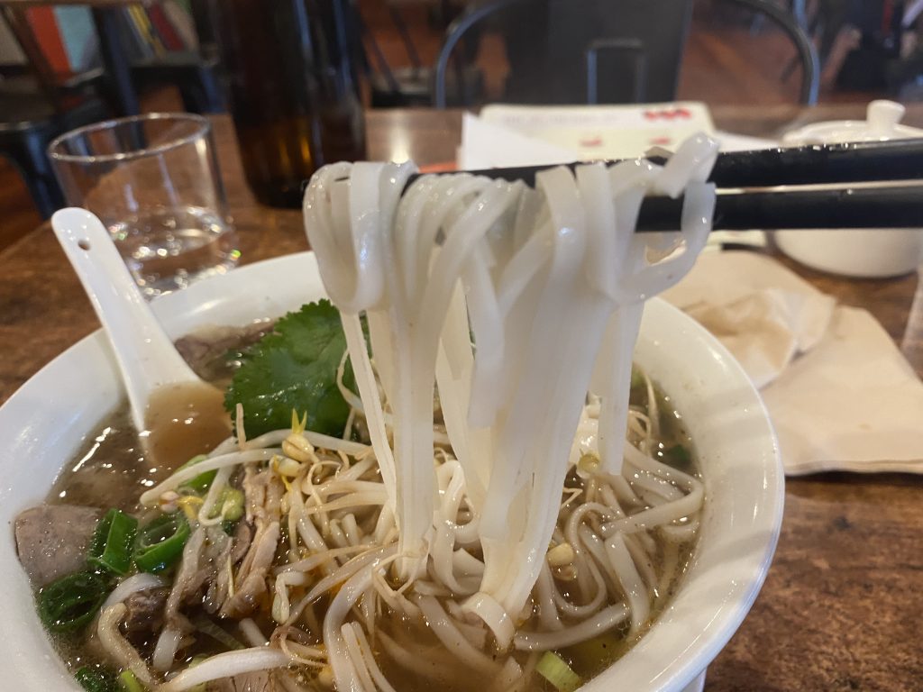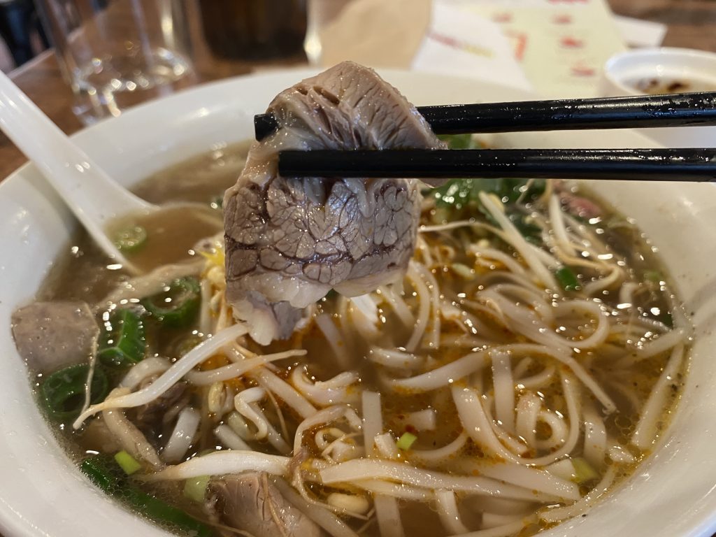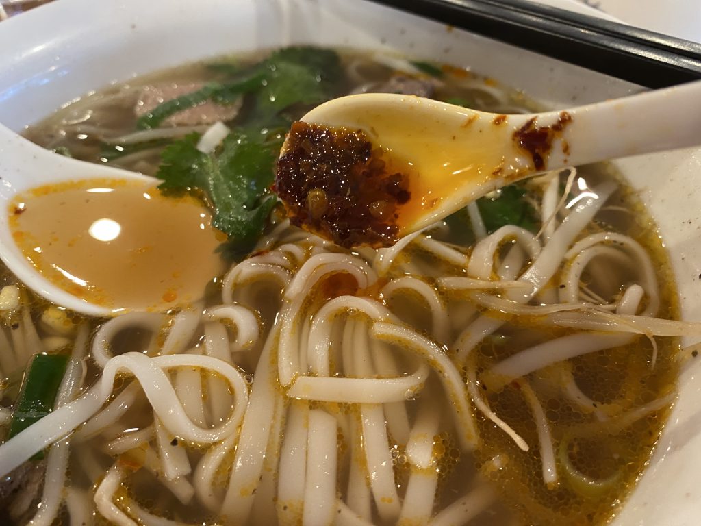 The rice noodles were smooth and silky, going down easily. The broth struck a nice balance between the brightness of the citrus and the richness of the beef-bone stock. While some seasoning is likely used, it didn’t overpower the soup. The generous amount of coriander added a distinctive aroma that paired beautifully with the broth.