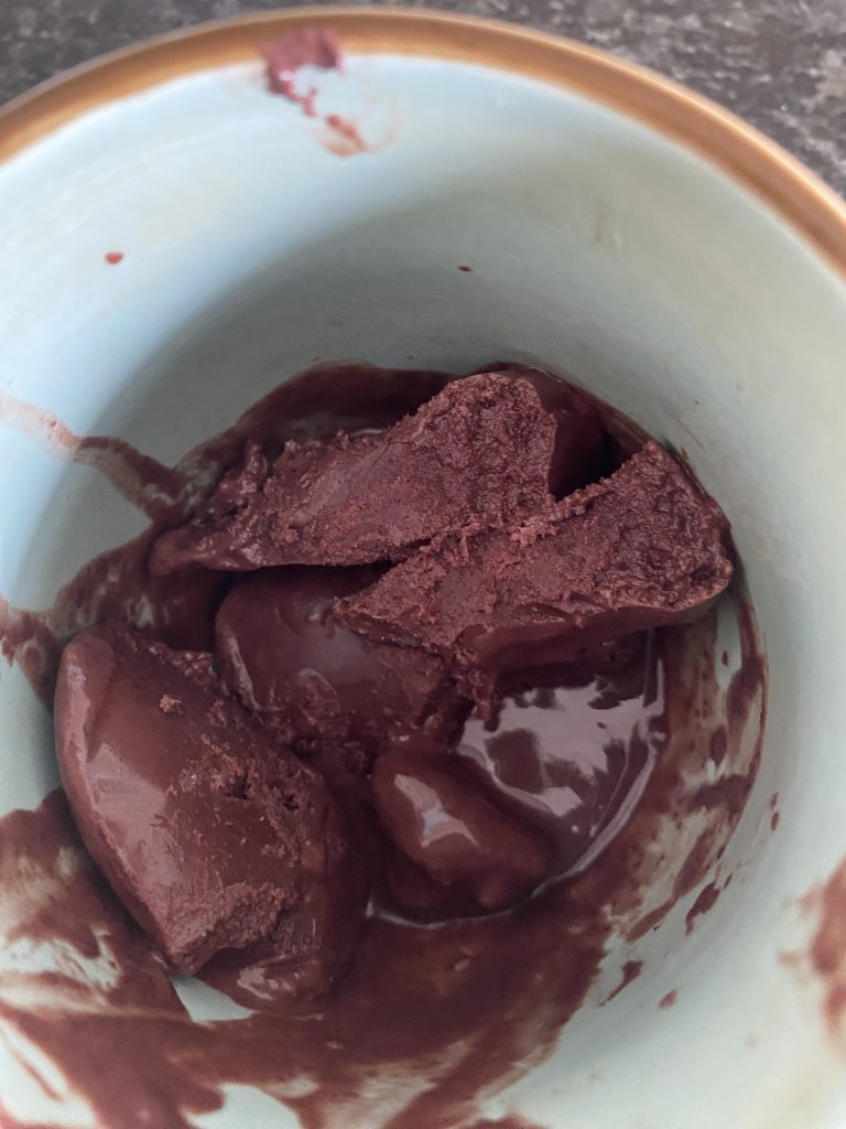 If you throw it into your lunch bag, it works nicely as a cooling pack too. Let it soften just a little, and that’s when it tastes best.